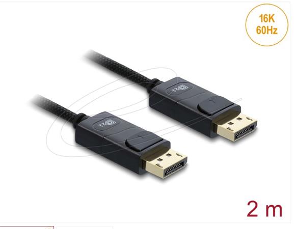 Delock Koaxiální kabel DisplayPort 16K 60 Hz 80 Gbps s pleteným opláštěním 2 m