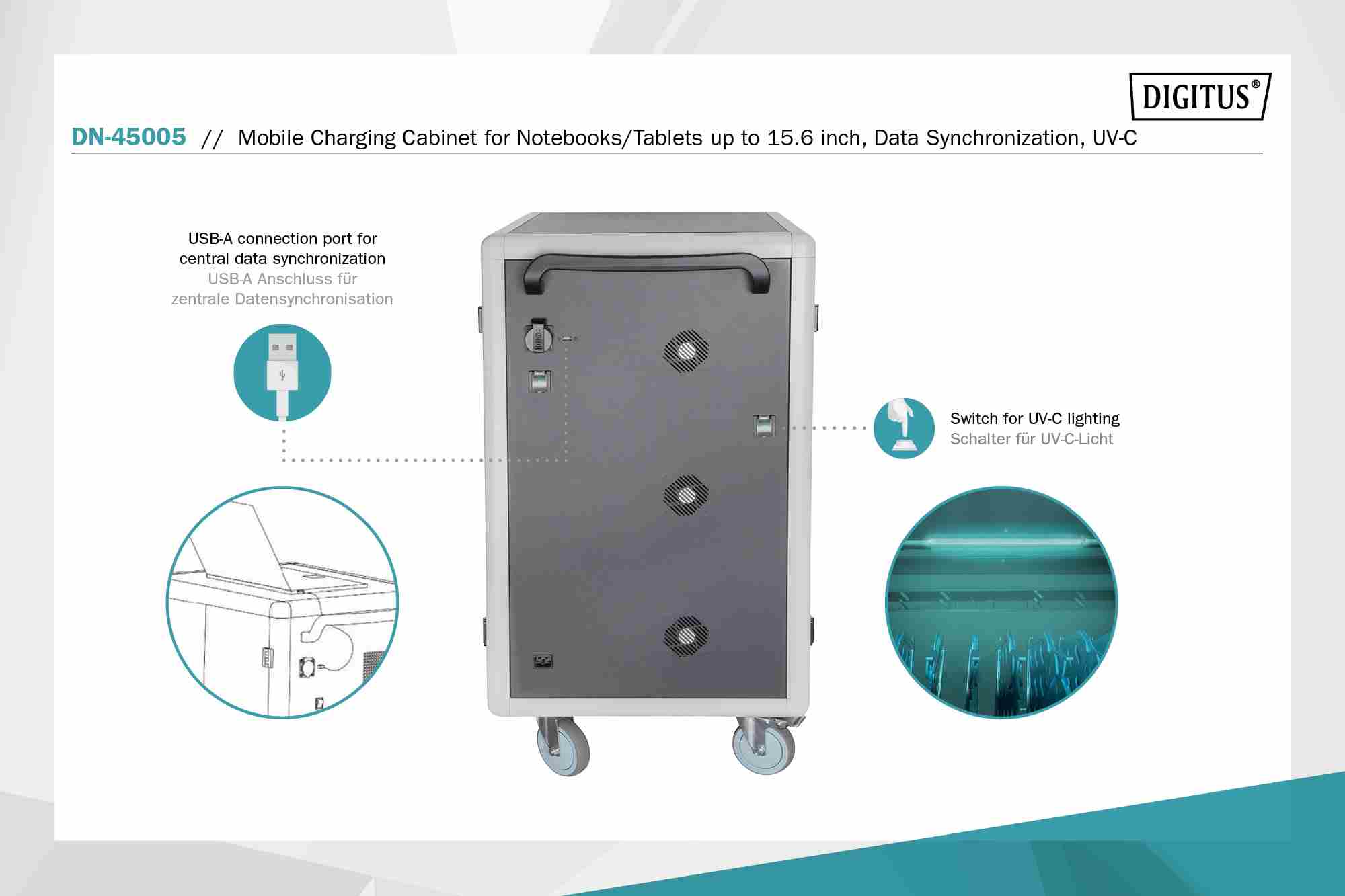 DIGITUS Mobilní nabíjecí skříňka pro notebooky/tablety do 15,6", synchronizace dat, UV-C Osvětlení-Sterilizace