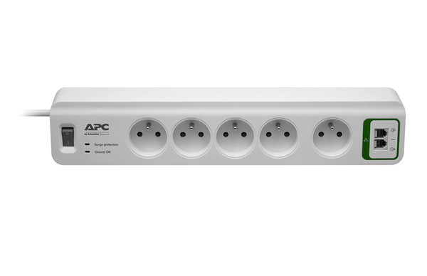 APC Essential SurgeArrest 5 outlets with Phone Protection 230V France, Czech, Slovak, Poland, Hungary Síťový filtr s pěti zásuvkami, délka přívodní šňůry 1,83 metru Přepěťová ochrana a filtrace Energie rázu 918J Potlačení šumu podle EMI/RFI (100 k