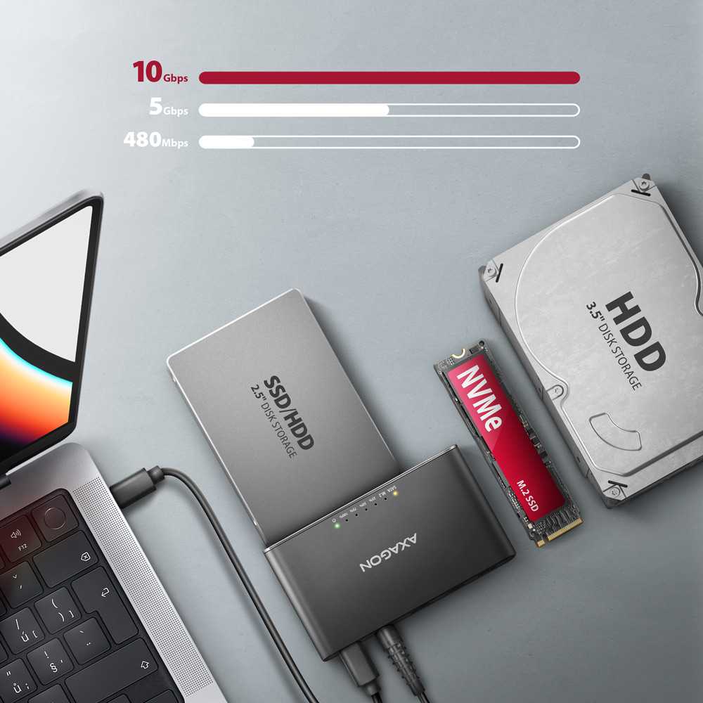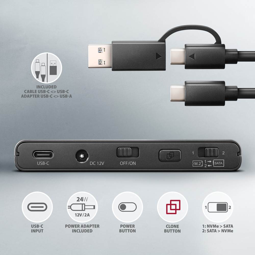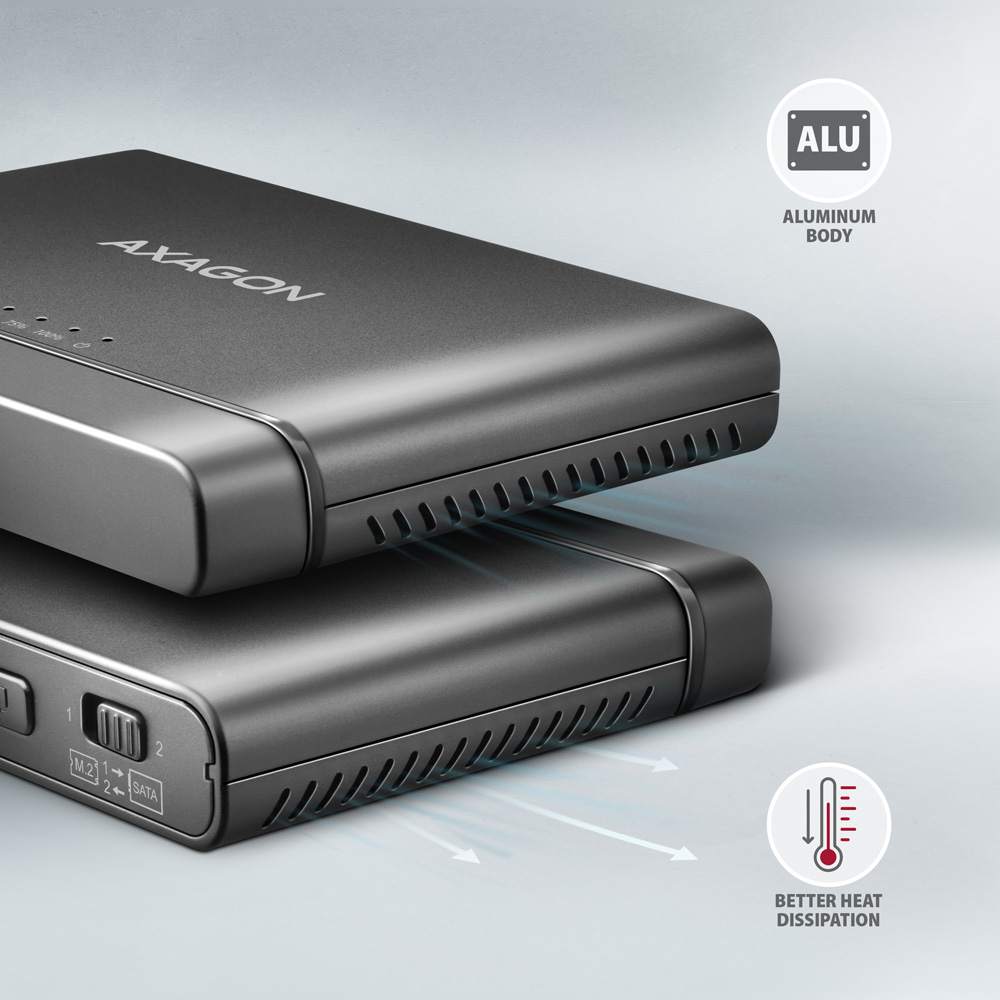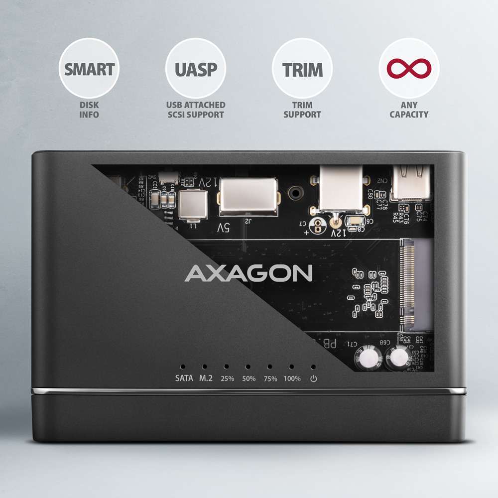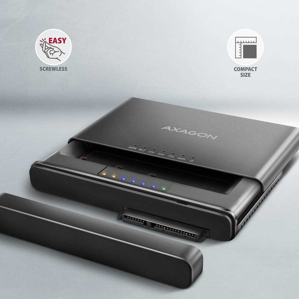 AXAGON ADSA-CC USB-C 10Gbps - NVMe M.2 SSD & SATA 2.5"/3.5" SSD/HDD CLONE MASTER 2 adaptér