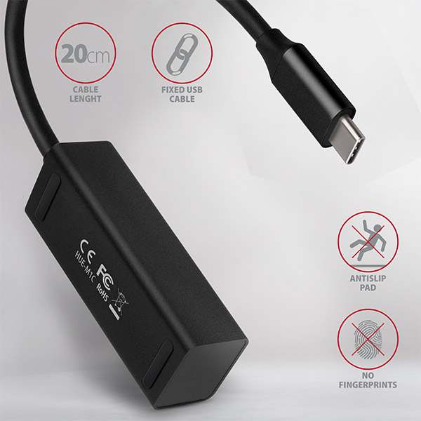 • SuperSpeed USB-C rozbočovač s kabelem napevno délky 20 cm,