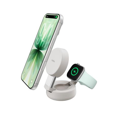 Belkin UltraCharge™ PRO Qi2 25W 2v1 Magnetická nabíječka pro iPhone/Apple Watch, písečná