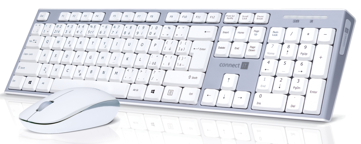 CONNECT IT Combo bezdrátová klávesnice + myš, 2,4GHz, USB, CZ + SK layout, šedo-bílá