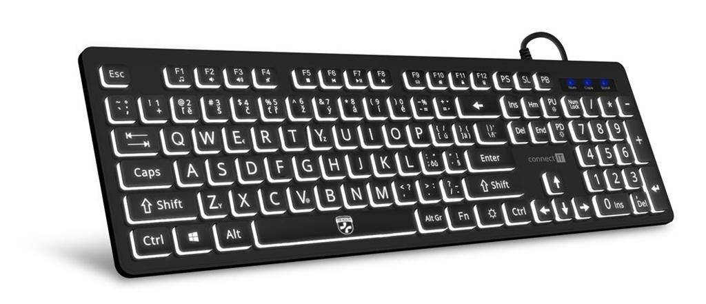 CONNECT IT FOR HEALTH LargeFont klávesnice s velkým fontem, podsvícená/USB/CZ + SK verze, ČERNÁ