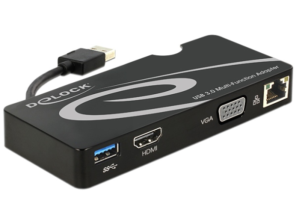 Tento Delock adaptér může být připojen k vašemu PC nebo notebooku k rozhraní USB 3.0 a rozšířit tak váš počítače o jeden port monitoru, rozhraní Gigabit LAN a rozhraní USB 3.0. Můžete tak k adaptéru připojit HDMI monitor a VGA monitor, ale ve stejný čas