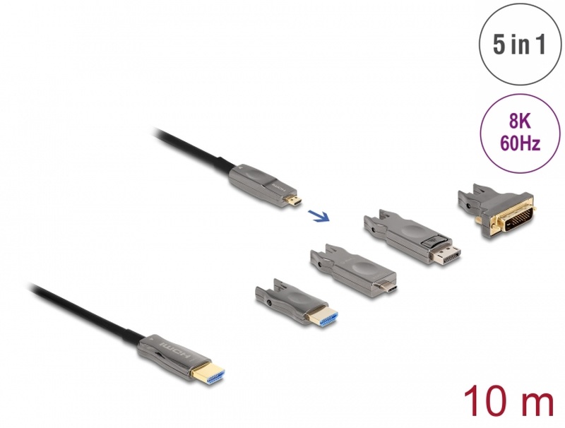 Delock Aktivní optický HDMI kabel 5 v 1, 8K, 60 Hz, 10 m