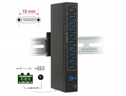 Delock Externí průmyslový Hub 10 x USB 3.0 Typ-A s ochranou 20 kV ESD