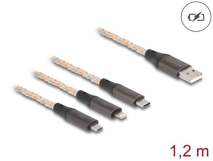 Delock Nabíjecí kabel USB RGB 3 v 1 z Typ-A na Lightning™ / Micro USB / USB Type-C™, 1,20 m
