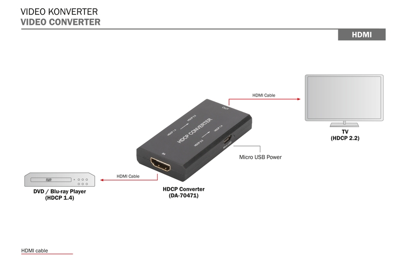 HDMI HDCP Converter 1.4 to 2.2, 2.2 to 1.4, black Description HDMI HDCP Converter 1.4 to 2.2, 2.2 to 1.4, black Converts the HDCP version of an HDMI signal source (1.4 to 2.2 or 2.2 to 1.4) Converts the HDCP version of an HDMI signal source (1.4