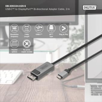 DIGITUS 8K@30Hz. USB type C na DP, Adaptérový kabel HBR3, hliníkové pouzdro, černá 2m