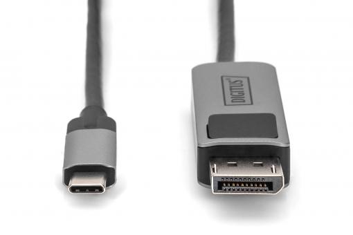 DIGITUS 8K@30Hz. USB typu C na DP; kabelový adaptér HBR3; Alu bydlení; Černá 1m