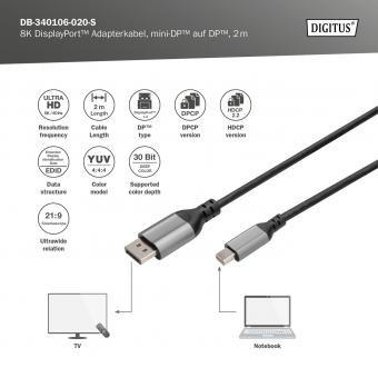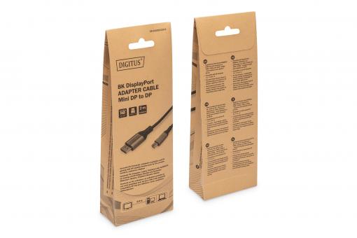 Digitus 8K@60Hz, mini DP to DP; DP 1.4 Alu housing; Black; 2m