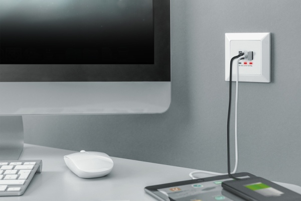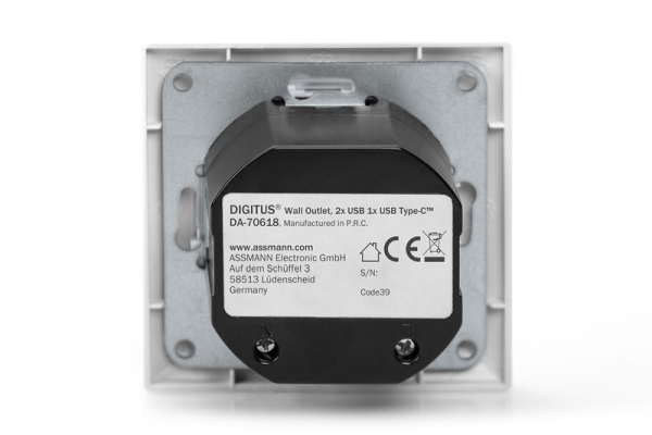 Charge smartphones and tablets directly from the wall socket! With the DIGITUS® USB charging box you can even charge 3 smartphones or tablets at the same time. Charge one USB-C™ device with up to 14 W (5 V / 2.8 A) and two USB A devices with up to 14 W (5 V / 2.8 A). For example you can charge your smartphone and your tablet simultaneously with a total available charging capacity of 15.5 W. Protect yourself and your family with the integrated electronic short circuit and overload protection in the USB ports. Upgrade your existing electrical installations and enjoy being able to charge your USB devices at any time, directly from the wall socket.