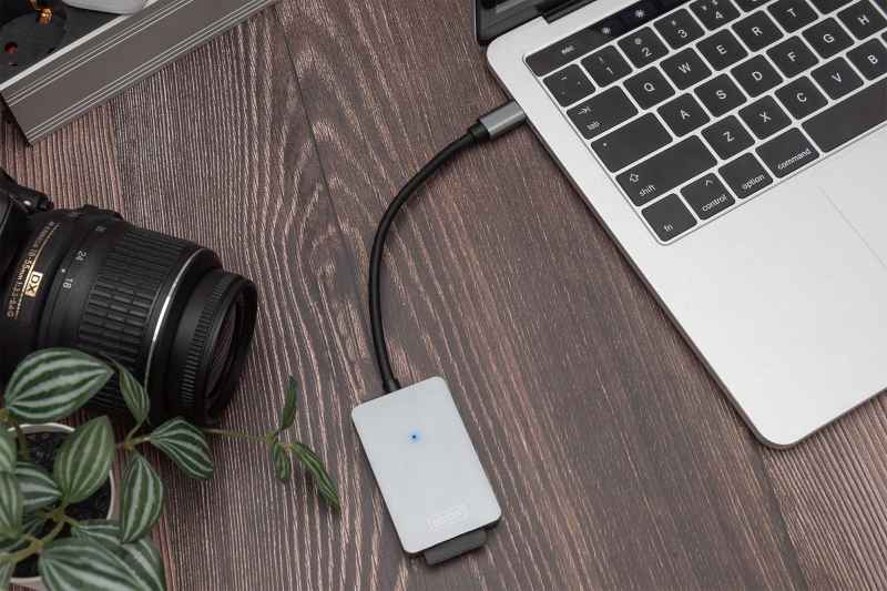 Čtečka karet USB-C, 2 porty UHS-II SD4.0, TF4.0, 300 Mb/s Nejrychlejší a nejjednodušší způsob přenosu fotografií z digitálního fotoaparátu do počítače. Kopírujte fotoalba a soubory na paměťovou kartu SD a z ní rychlostí až 300 MB/s. Podporuje násle