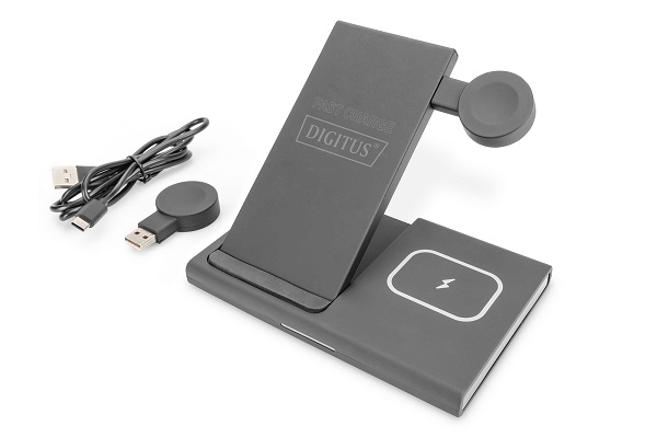 DIGITUS Nabíjecí stanice 3 v 1, bezdrátová pro Apple iWatch, Airpods, iPhone
