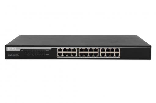 DIGITUS 24-Port Gigabit Switch 24-port 10/100/1000Base-T incl. Rack Mount Kit Description 24 port gigabit switch Ideal for the division of work via workgroups using multiple high speed servers. 24 x 10/100/1000Base-T Complies with the IEEE