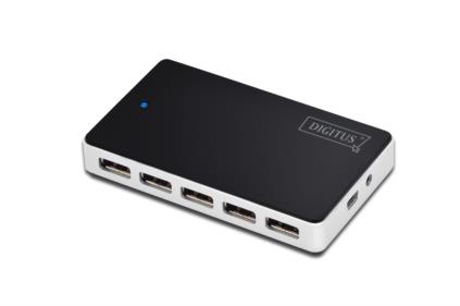 DIGITUS USB 2.0 Hub 10-port, 10x USB A/F, 1x USB mini,incl.USB cable A/mini 1m & ext. power supply 5V DC 4A The DIGITUS® USB 2.0 10-port hub makes it simple to connect up to 10 USB-devices at the same time to a PC or Mac. Plug in your favorite USB-devi