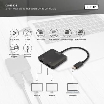 DIGITUS USB-C - 2x HDMI MST Video Hub DP 1.4, HDMI 2.0, 4K/60Hz