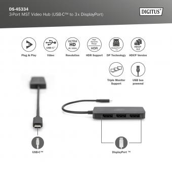 DIGITUS USB-C - 3x DP MST Video Hub DP 1.4, 4K/60Hz
