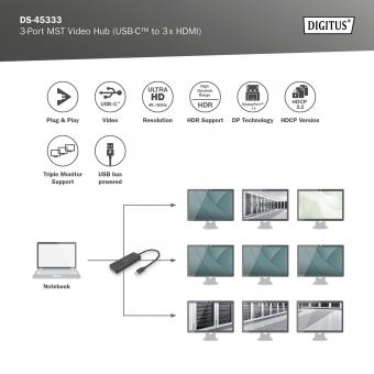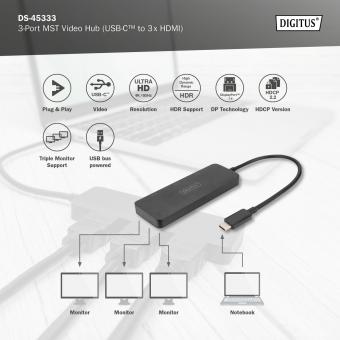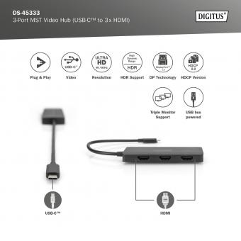 DIGITUS USB-C - 3x HDMI MST Video Hub DP 1.4, HDMI 2.0, 4K/60Hz