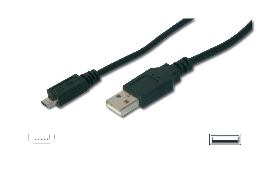 Allows a reliable and fast connection of external USB devices with the PC, also about longer distances. For connection of external USB devices (with USB micro B socket, e.g. MP3 -player, smart phone or external HDD enclosure) to the USB host (e. g. PC, notebook or USB hub). Data transfer rate up to 480 Mbps (High-Speed). l Connector 1: USB A, plug l Connector 2: Micro USB B, plug l Hoods: molded l Connector surface: nickel-plated l Color cable: black l Color connector: black l Length: 1.8 m l Assortment: USB Cables l USB compliance: USB 2.0