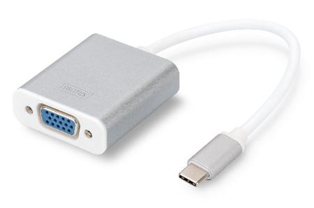 DIGITUS USB Typ C 1080p VGA Adaptér, hliníkové šasi, 20 cm kabel, Chipset: VL100+IT6513
