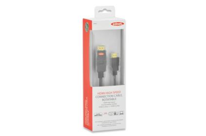 Ednet HDMI High Speed + Ethernet připojovací kabel, typ A, rotační, M/M, 5m, Ultra-HD, UL, bavlna, zlacené konektory Tento Full HD, 3D a Ultra-HD kabel s otočným konektorem slouží pro připojení audio/video zařízení, jako jsou Blu-ray přehrávače, hern