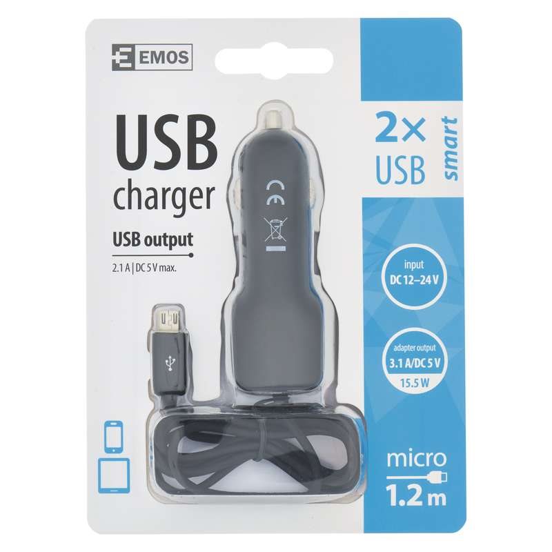 Emos napájecí zdroj USB CL 3.1A (15.5W), 1x USB + 1x microUSB, do auta