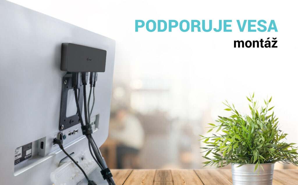 Dokovací stanice podporuje držák VESA pro inteligentní vertikální instalaci za monitor s podporou VESA
