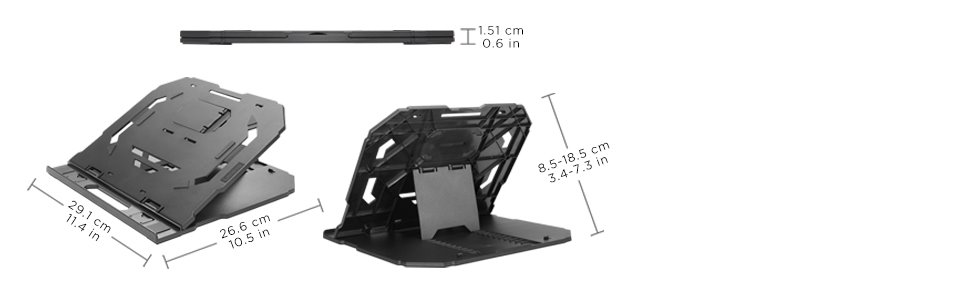 The sturdy, non-slip stand allows you to ergonomically angle your laptop and phone to prevent aches and tension, while ventilation holes improve your laptop’s cooling performance.