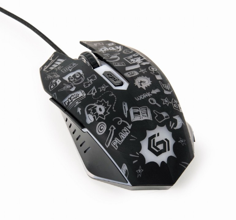 Myš GEMBIRD MUS-6B-GRAFIX-01, černá s grafickým potiskem, USB