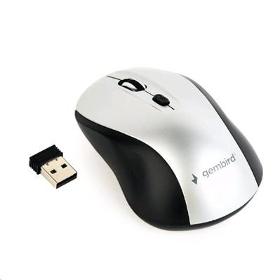 Myš GEMBIRD MUSW-4B-02-BS, černo-stříbrná, bezdrátová, USB nano receiver