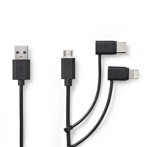 Nedis CCGL60620BK10 - USB 2.0 kabel 3v1 | USB-A Zástrčka - USB-C/Micro USB-B/Apple Lighting Zástrčka | 1 m | Černá