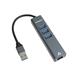 Převodník, který umožní připojit Váš počítač s portem USB3.0 typu A do internetu nebo k lokální síti pomocí kabelu s RJ45 a navíc umožňuje zapojit tři USB3.0 periferie jako USB disk, tiskárnu, klávesnici a myš