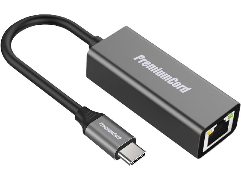 PremiumCord Převodník USB-C na Gigabit konektor RJ45 Převodník, který umožní připojit Váš počítač s portem USB typu C do internetu nebo k lokální síti pomocí kabelu RJ45. Adaptér je vhodný pro počítače, zpravidla notebooky, které nedisponují etherneto