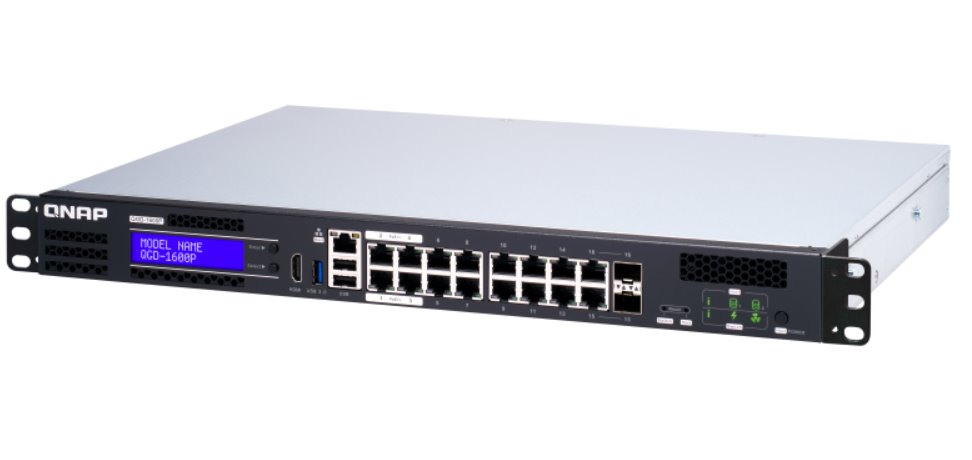 Zařízení QGD-1602P společnosti QNAP je na světě vůbec první řadou řízených přepínačů PoE, které podporují virtuální počítače (VM). Díky portům 2,5GbE a 10GbE SFP+ a až 90W výstupu PoE vám zařízení QGD-1602P umožňuje vybudovat vysokorychlostní a výkonnou