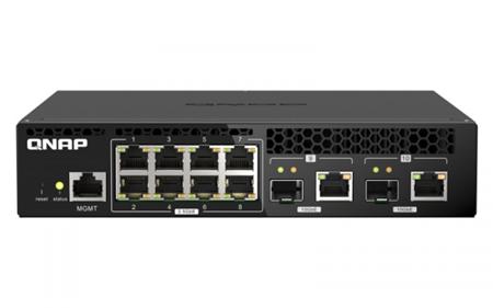 Zařízení QSW-M2108R-2C je webově řízený přepínač (switch) úrovně 2 se dvěma kombinovanými porty 10GbE SFP+/RJ45 a osmi porty 2,5 Gigabit. Zařízení QSW-M2108R-2C podporuje přepínání a správu sítě úrovně 2 (L2) prostřednictvím uživatelsky vstřícného webové