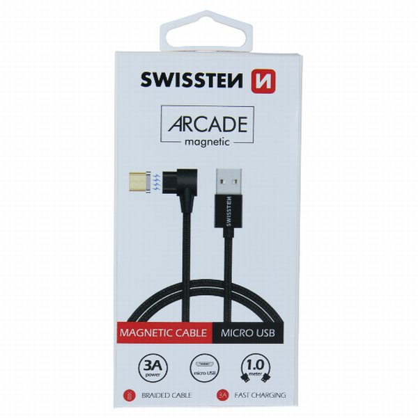 SWISSTEN MAGNETICKÝ TEXTILNÍ DATOVÝ KABEL ARCADE USB / MICRO USB 1,2 M ČERNÝ