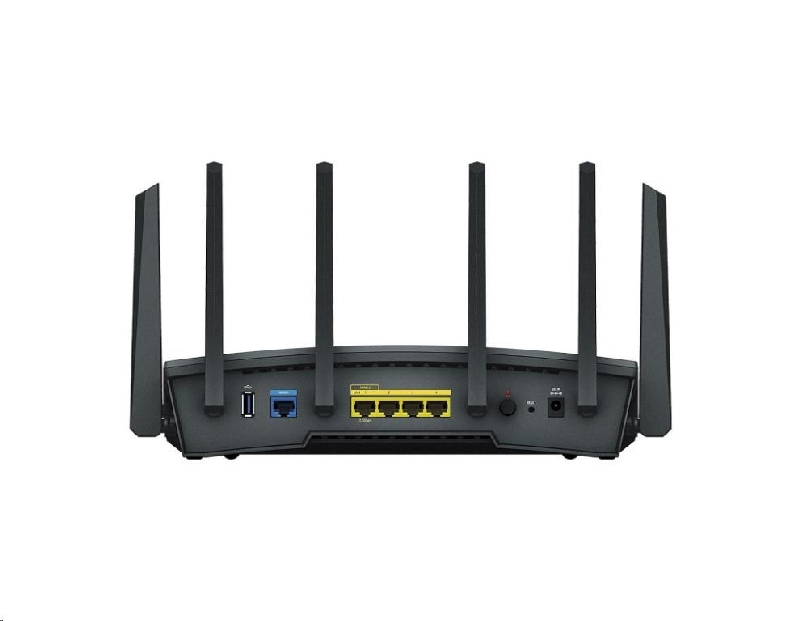 Třípásmový směrovač RT6600ax, založený na novém standardu Wi-Fi 6, nabízí přenosovou rychlost až 6,6 Gb/s v kombinovaném bezdrátovém provozu. Jeho tři rádia spolupracují s konfigurovatelným portem 2,5GbE WAN/LAN a zajišťují tak maximální rychlost připojení jednotlivých zařízení. Směrovač RT6600ax, řízený naším neustále se vyvíjejícím operačním systémem Synology Router Manager, je navržen tak, aby zjednodušil zabezpečení a správu sítě.