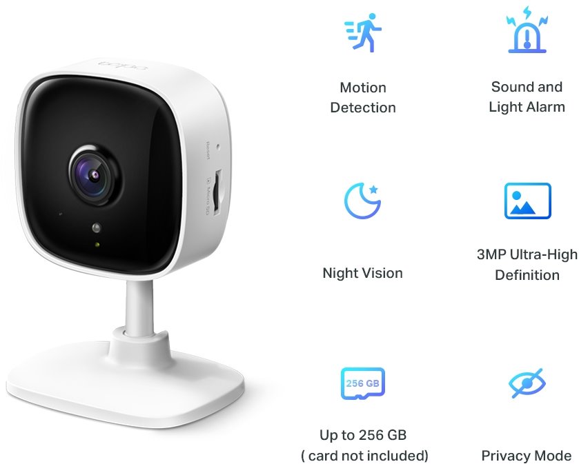 Wi-Fi kamera pro zabezpečení domácnosti Video s rozlišením UHD – zaznamenejte každý okamžik v ultra vysokém 3MPx rozlišení. Pokročilé noční vidění – nabízí viditelnost až do vzdálenosti 10 m. Detekce pohybu a upozornění – upozorní vás, pokud kamera zaz