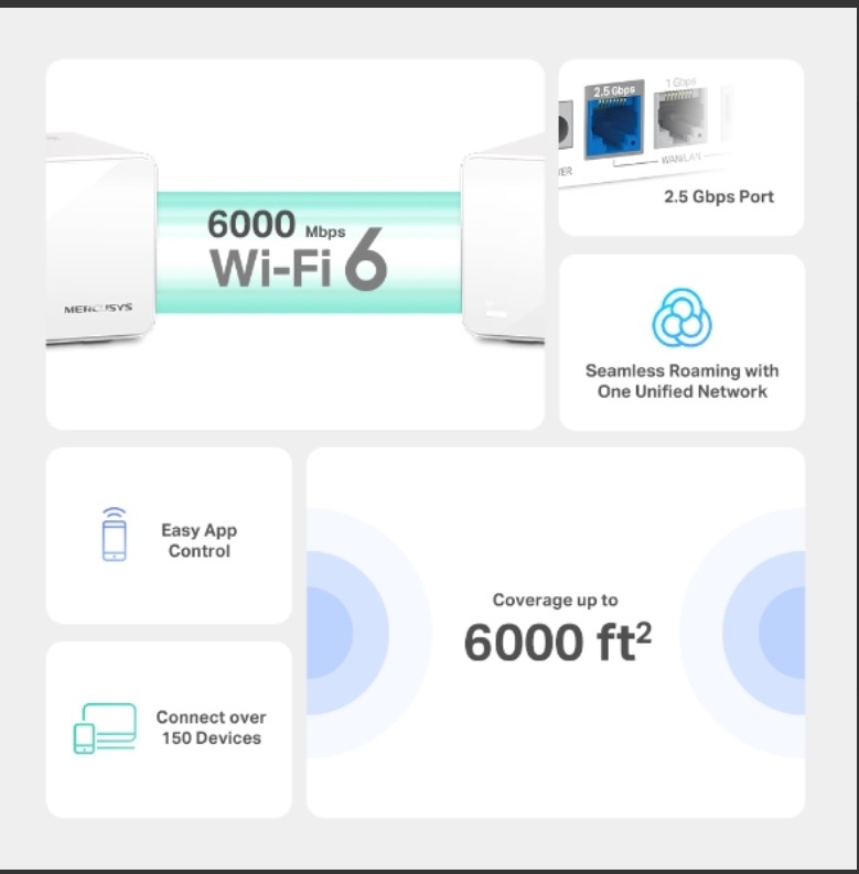 Vytvořte si doma jednu sjednocenou síť s bezproblémovým roamingem pomocí routeru Mercusys Halo H90X (3-pack). Jednotky Halo spolupracují a přepínají se mezi sebou podle toho, jak se pohybujete po domě. V každé místnosti tak máte dokonalé připojení pod je